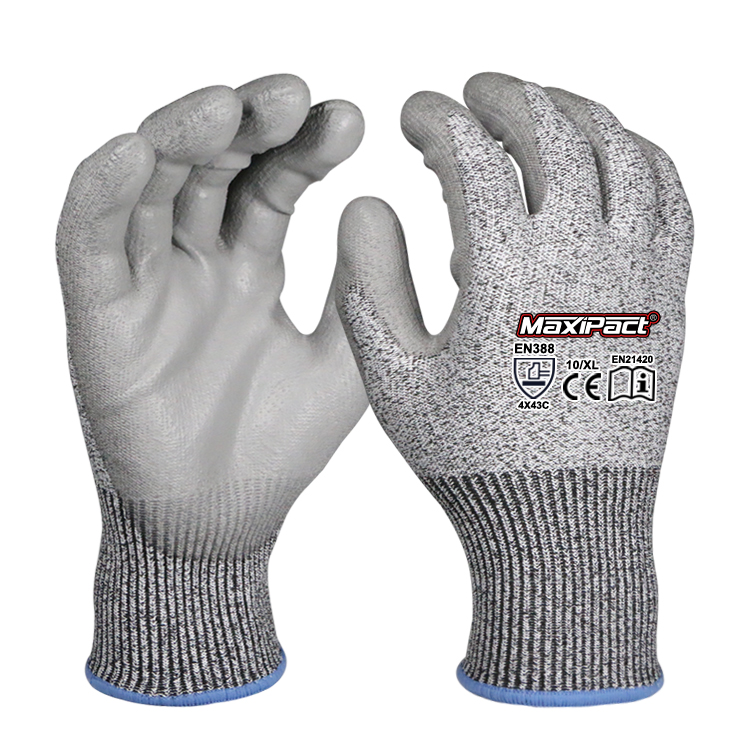 40-300 GREY 13G anti-cut PU safety gloves strike a good balance between comfort and safety performance. They are woven with 13-needle high-strength anti-cut yarn and have a cut resistance level of 1-5, which effectively protects against accidental scratches during operation. They are especially suitable for high-risk environments such as glass processing, metal manufacturing, and mechanical maintenance.